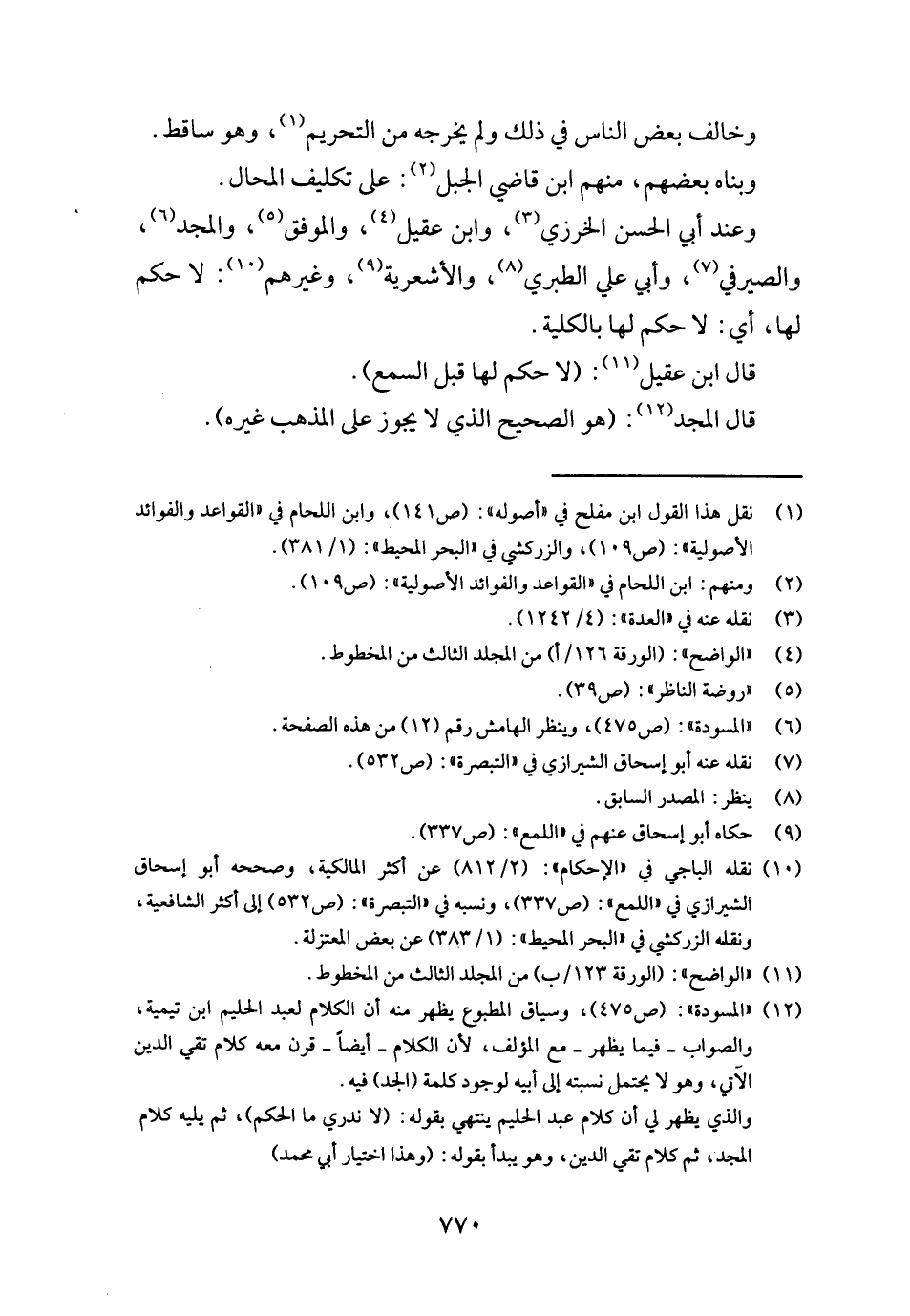 وَخَالف بعض النَّاس فِي ذَلِك وَلم يُخرجهُ من التَّحْرِيم، وَهُوَ سَاقِط وبناه بَعضهم، مِنْهُم ابْن قَاضِي الْجَبَل: على تَكْلِيف الْمحَال.