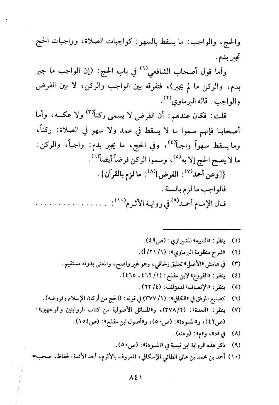 وَالْحج، وَالْوَاجِب: مَا يسْقط بالسهو: كواجبات الصَّلَاة، وواجبات الْحَج تجبر بِدَم.