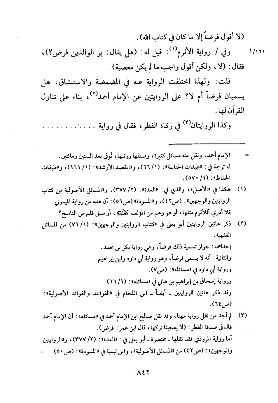 وَفِي رِوَايَة الْأَثْرَم: قيل لَهُ: (هَل يُقَال: بر الْوَالِدين فرض؟) ، فَقَالَ: (لَا، وَلَكِن أَقُول وَاجِب مَا لم يكن مَعْصِيّة) .