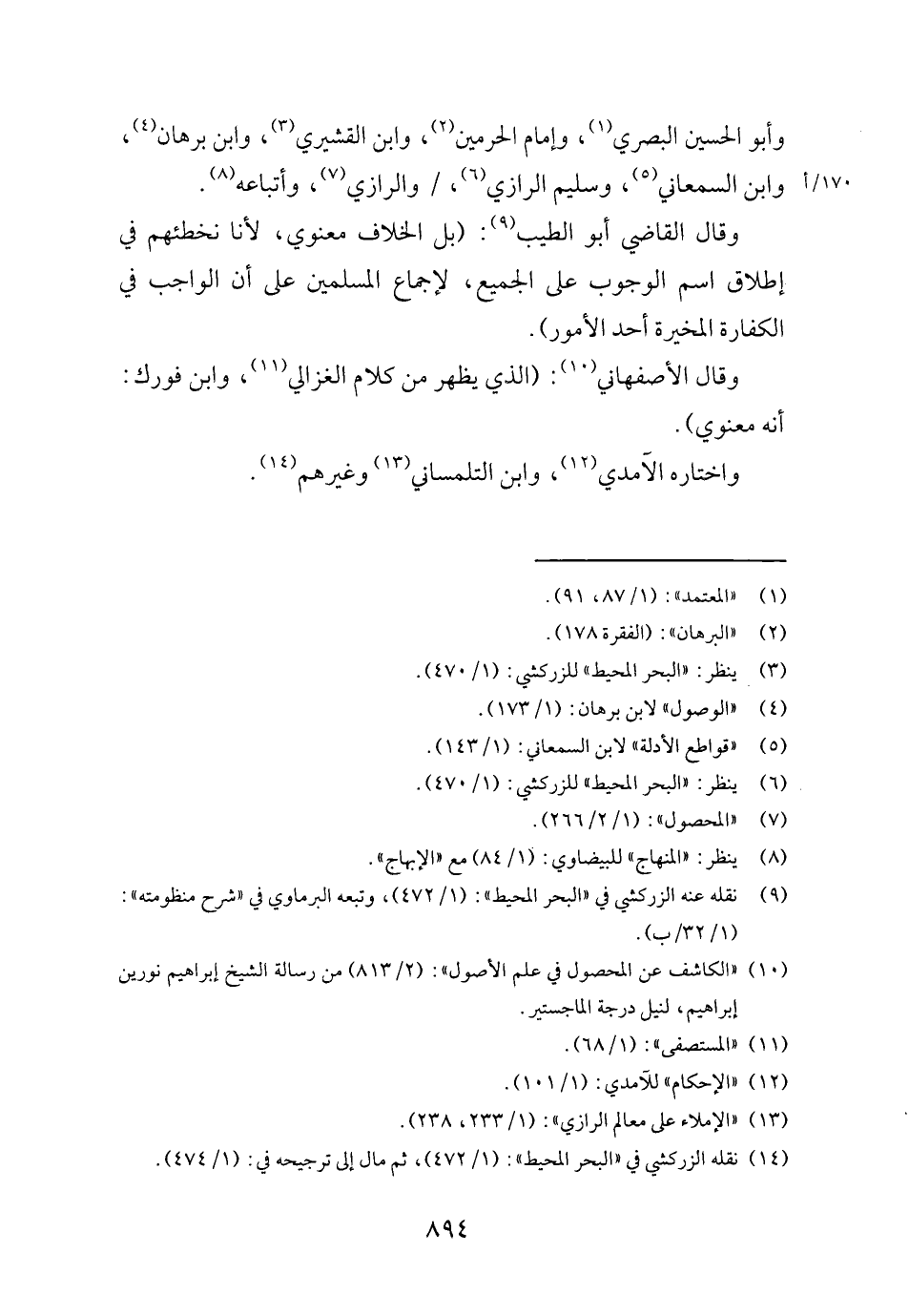 وَأَبُو الْحُسَيْن الْبَصْرِيّ، وَإِمَام الْحَرَمَيْنِ، وَابْن الْقشيرِي، وَابْن برهَان، وَابْن السَّمْعَانِيّ، وسليم الرَّازِيّ، والرازي، وَأَتْبَاعه.
