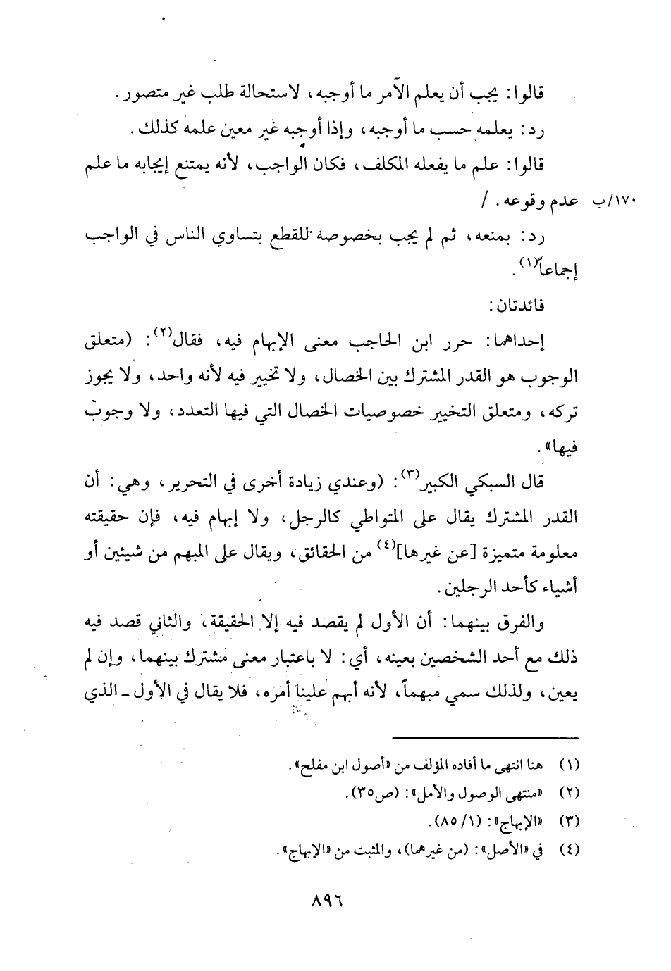 إِحْدَاهمَا: حرر ابْن الْحَاجِب معنى الْإِبْهَام فِيهِ، فَقَالَ: (مُتَعَلق الْوُجُوب هُوَ الْقدر الْمُشْتَرك بَين الْخِصَال، وَلَا تَخْيِير فِيهِ لِأَنَّهُ وَاحِد، وَلَا يجوز تَركه، ومتعلق التَّخْيِير خصوصيات الْخِصَال الَّتِي فِيهَا التَّعَدُّد، وَلَا وجوب فِيهَا ".