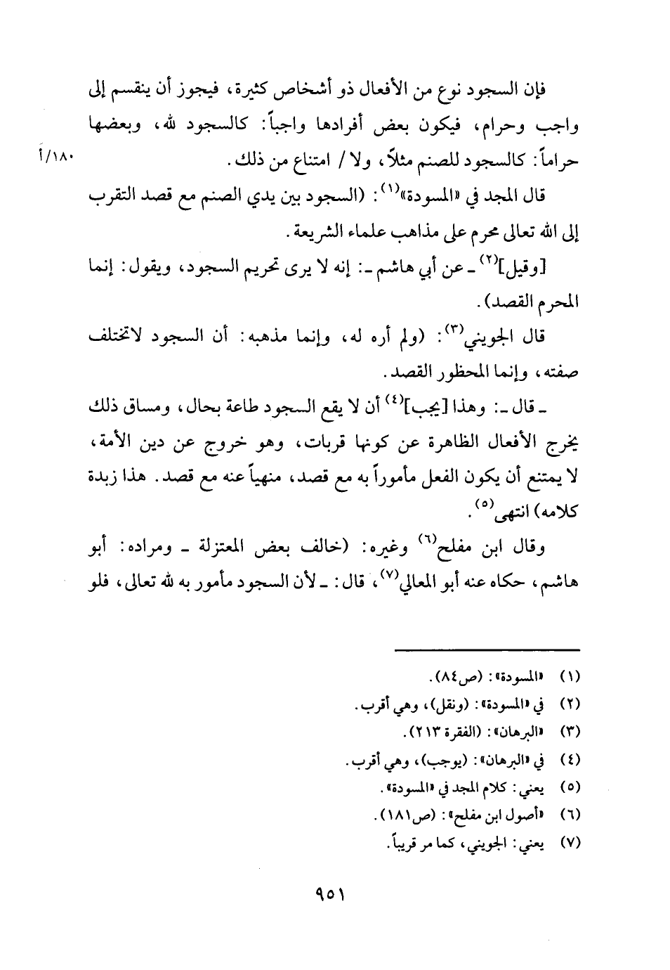 قَالَ الْمجد فِي " المسودة ": (السُّجُود بَين يَدي الصَّنَم مَعَ قصد التَّقَرُّب إِلَى الله تَعَالَى محرم على مَذَاهِب عُلَمَاء الشَّرِيعَة. [وَقيل] عَن أبي هَاشم -: إِنَّه لَا يرى تَحْرِيم السُّجُود، وَيَقُول: إِنَّمَا الْمحرم الْقَصْد) .