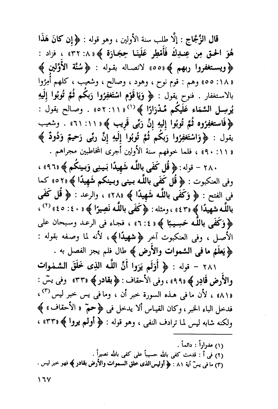 281 - قَوْله {أولم يرَوا أَن الله الَّذِي خلق السَّمَاوَات وَالْأَرْض قَادر} وَفِي الْأَحْقَاف {بِقَادِر} وَفِي يس 81 لِأَن مَا فِي هَذِه السُّورَة خبر أَن وَمَا فِي يس خبر لَيْسَ فَدخل الْبَاء الْخَبَر وَكَانَ الْقيَاس أَلا يدْخل فِي {حم} الْأَحْقَاف وَلكنه شابه لَيْسَ لما ترادف النَّفْي وَهُوَ قَوْله {أَو لم يرَوا} {