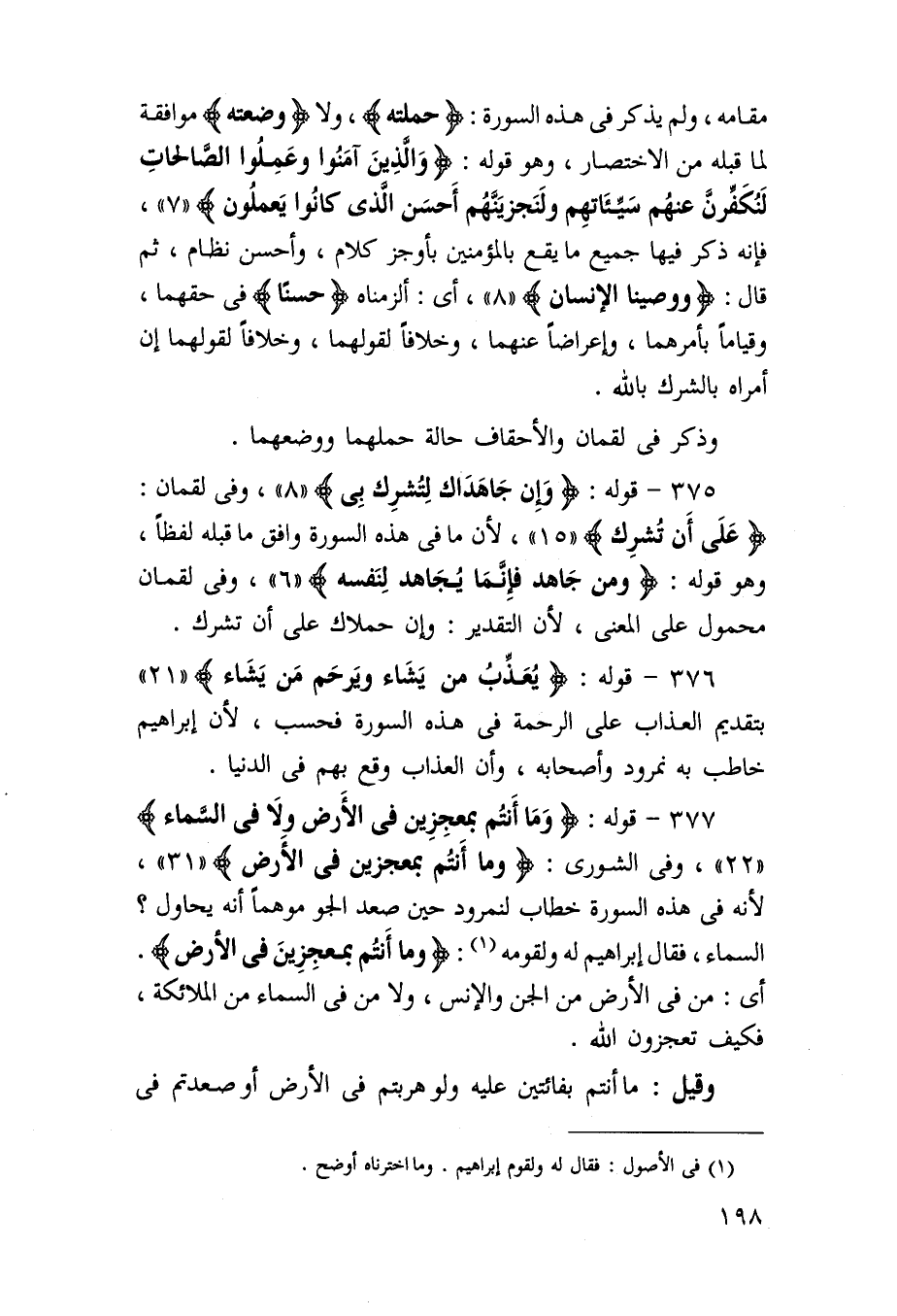 376 - قَوْله {يعذب من يَشَاء وَيرْحَم من يَشَاء} بِتَقْدِيم الْعَذَاب على الرَّحْمَة فِي هَذِه السُّورَة فَحسب لِأَن إِبْرَاهِيم خَاطب بِهِ نمروذ وَأَصْحَابه وَأَن الْعَذَاب وَقع بهم فِي الدُّنْيَا