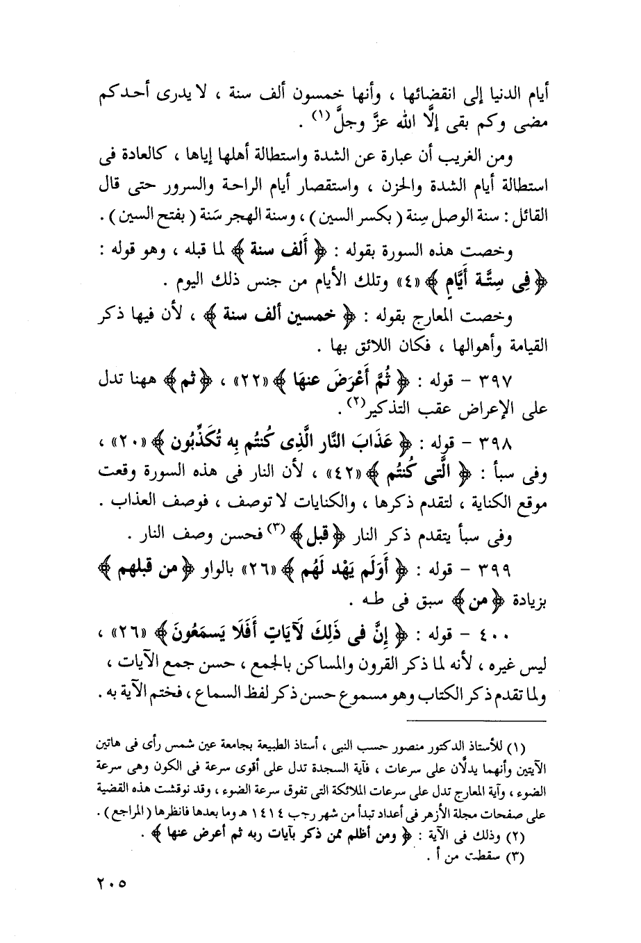 398 - قَوْله {عَذَاب النَّار الَّذِي كُنْتُم بِهِ تكذبون} وَفِي سبأ {الَّتِي كُنْتُم} لِأَن النَّار فِي هَذِه السُّورَة وَقعت موقع الْكِنَايَة لتقدم ذكرهَا والكنايات لَا تُوصَف فوصف الْعَذَاب