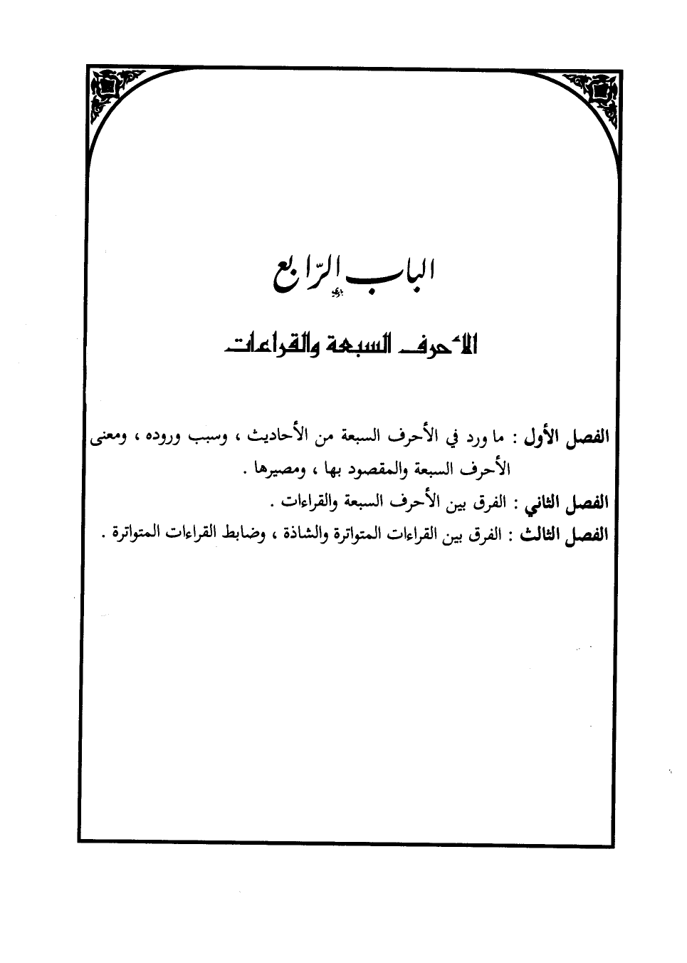 الباب الرّابع الأحرف السبعة والقراءات