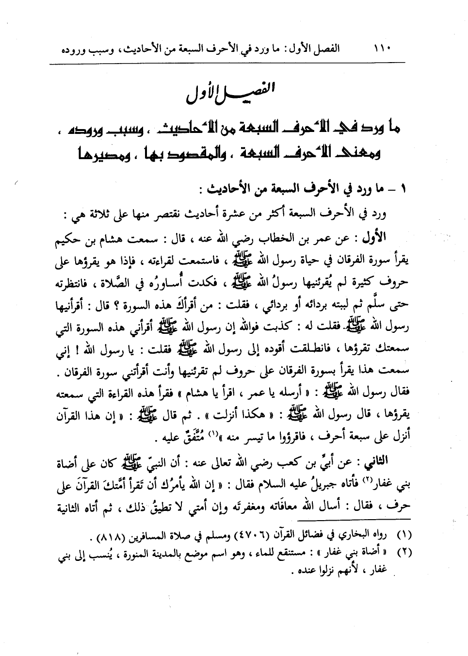 الفصل الأول ما ورد في الأحرف السبعة من الأحاديث، وسبب وروده، ومعنى الأحرف السبعة، والمقصود بها، ومصيرها