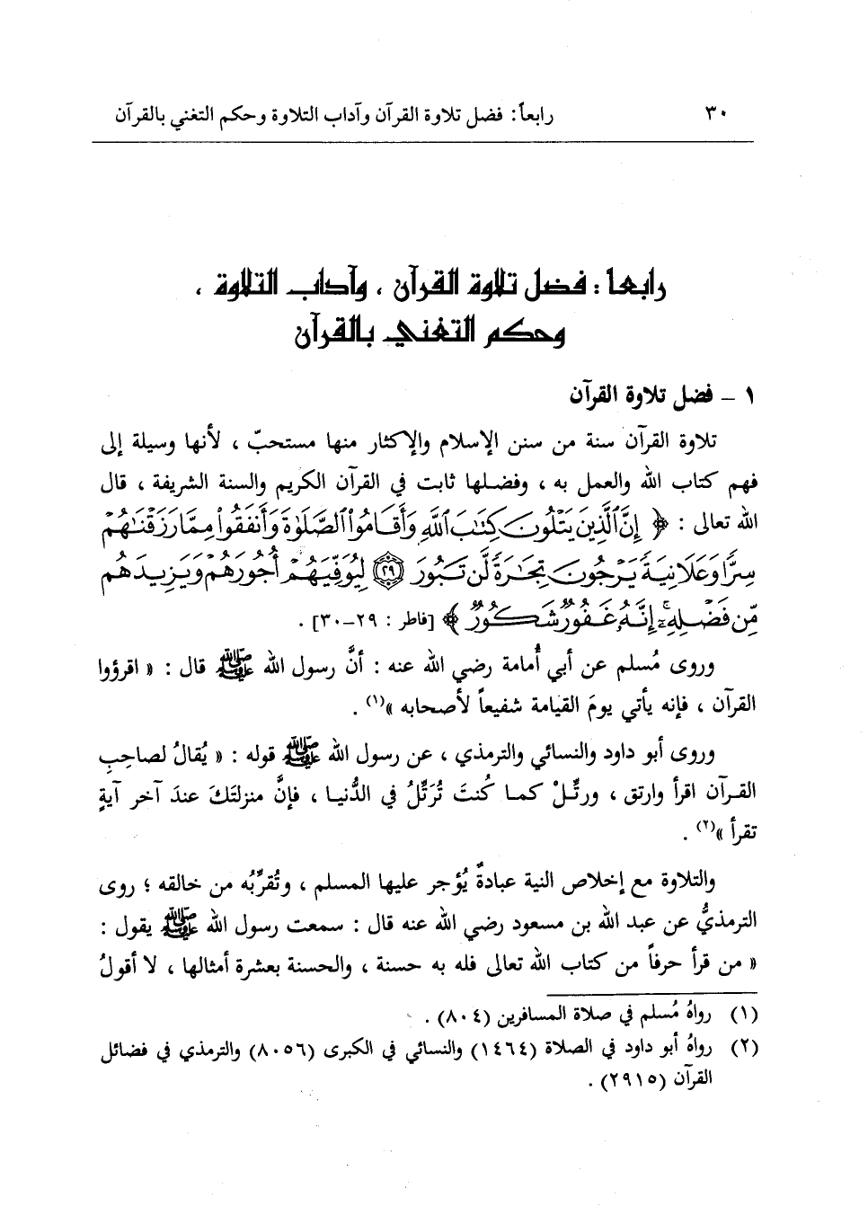 رابعا: فضل تلاوة القرآن، وآداب التلاوة، وحكم التغني بالقرآن