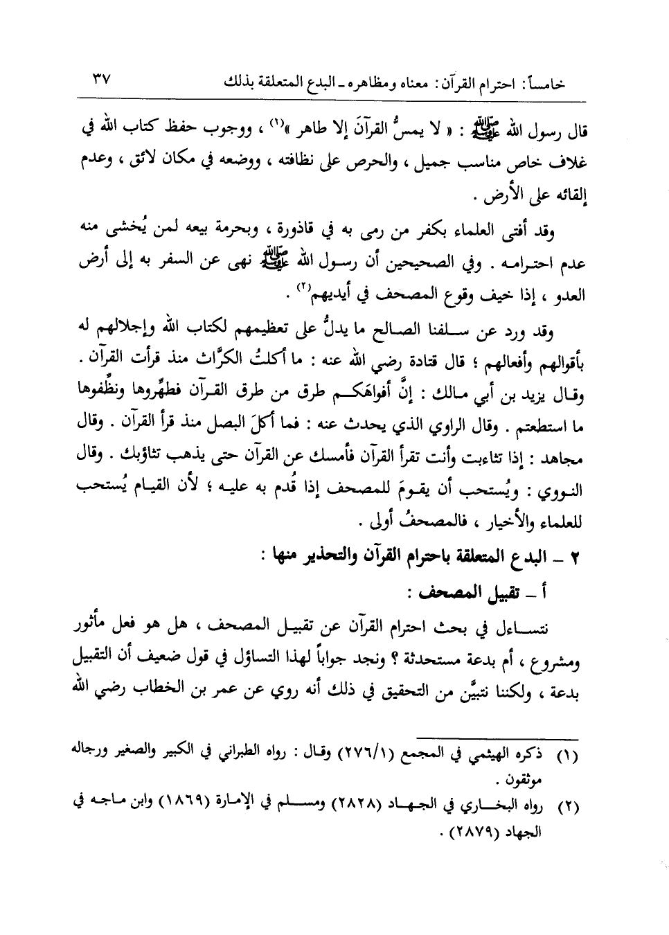2 - البدع المتعلقة باحترام القرآن والتحذير منها: