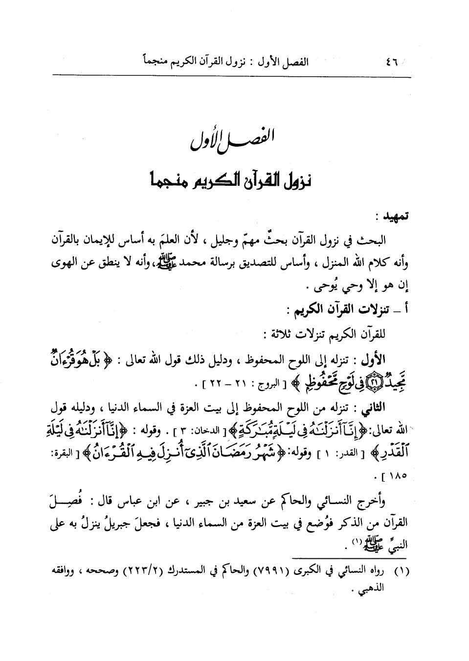 البحث في نزول القرآن بحث مهمّ وجليل، لأن العلم به أساس للإيمان بالقرآن وأنه كلام الله المنزل، وأساس للتصديق برسالة محمد صلّى الله عليه وسلّم، وأنه لا ينطق عن الهوى إن هو إلا وحي يوحى.