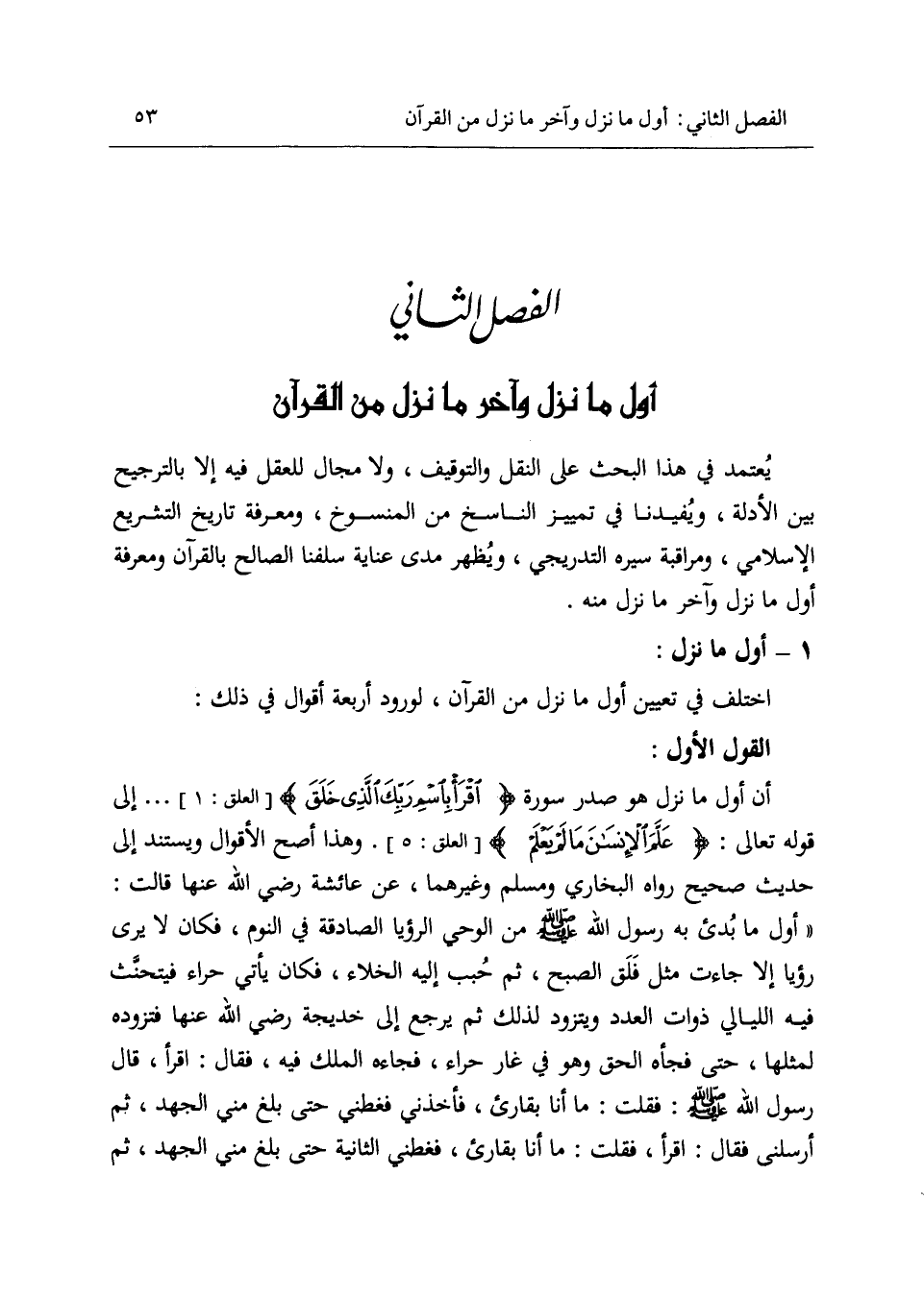 الفصل الثاني أول ما نزل وآخر ما نزل من القرآن