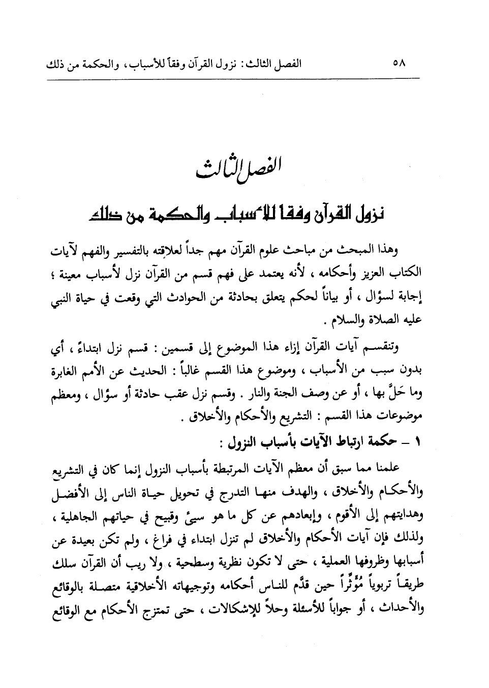 الفصل الثالث نزول القرآن وفقا للأسباب والحكمة من ذلك