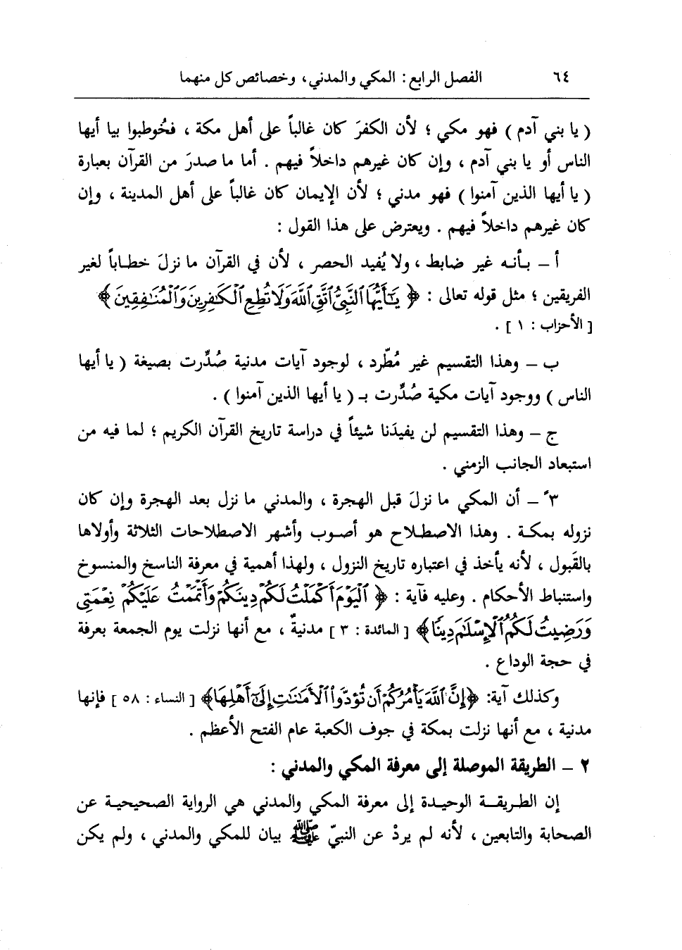 2 - الطريقة الموصلة إلى معرفة المكي والمدني: