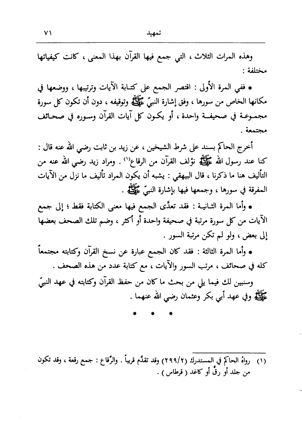 وسنبين لك فيما يلي من بحث ما كان من حفظ القرآن وكتابته في عهد النبيّ صلّى الله عليه وسلّم وفي عهد أبي بكر وعثمان رضي الله عنهما.