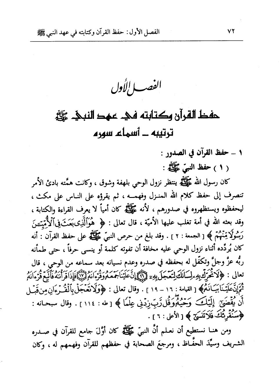 الفصل الأول حفظ القرآن وكتابته في عهد النبيّ صلّى الله عليه وسلّم ترتيبه- أسماء سوره