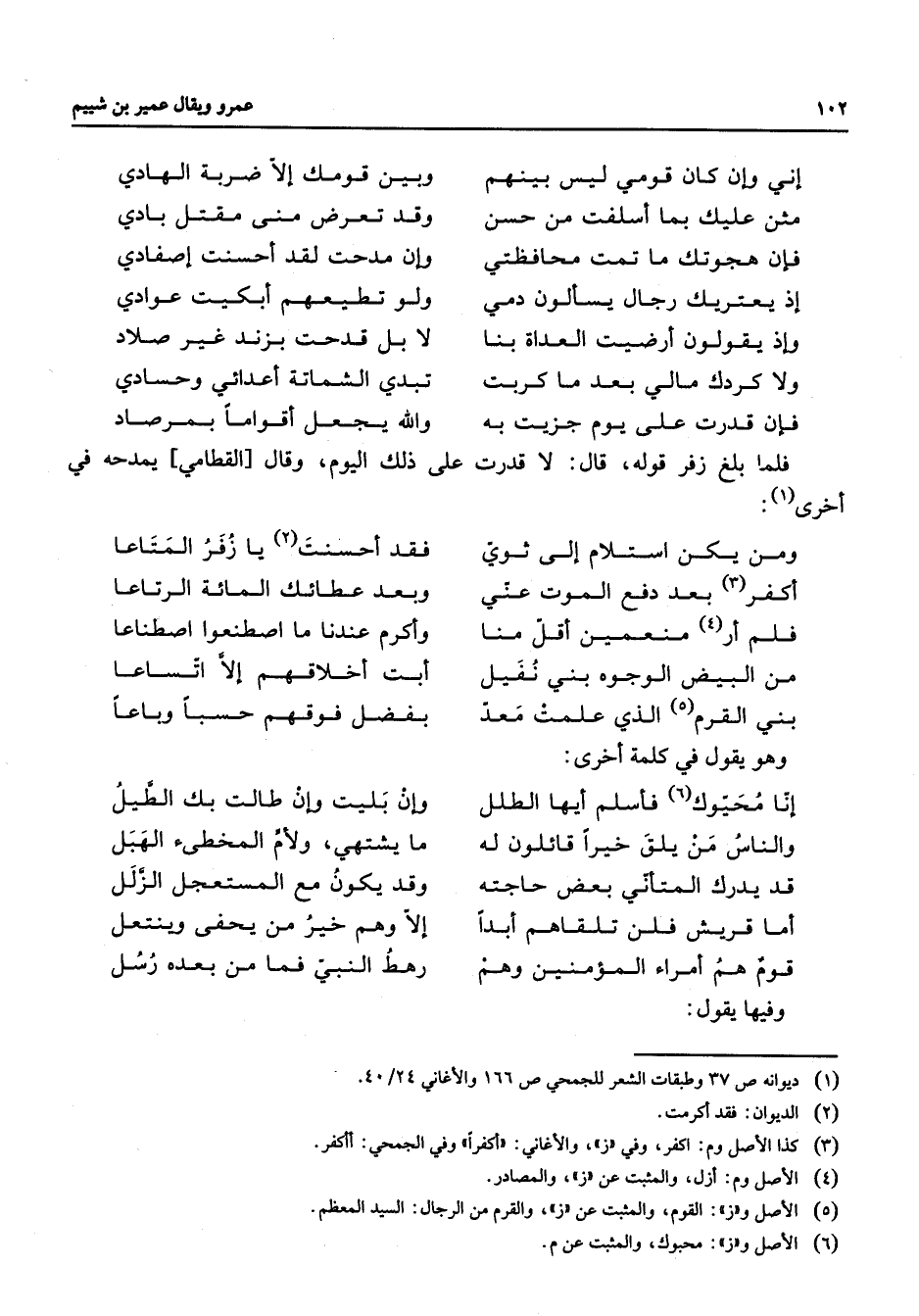 (1) ديوانه ص 37 وطبقات الشعر للجمحي ص 166 والأغاني 24 / 40