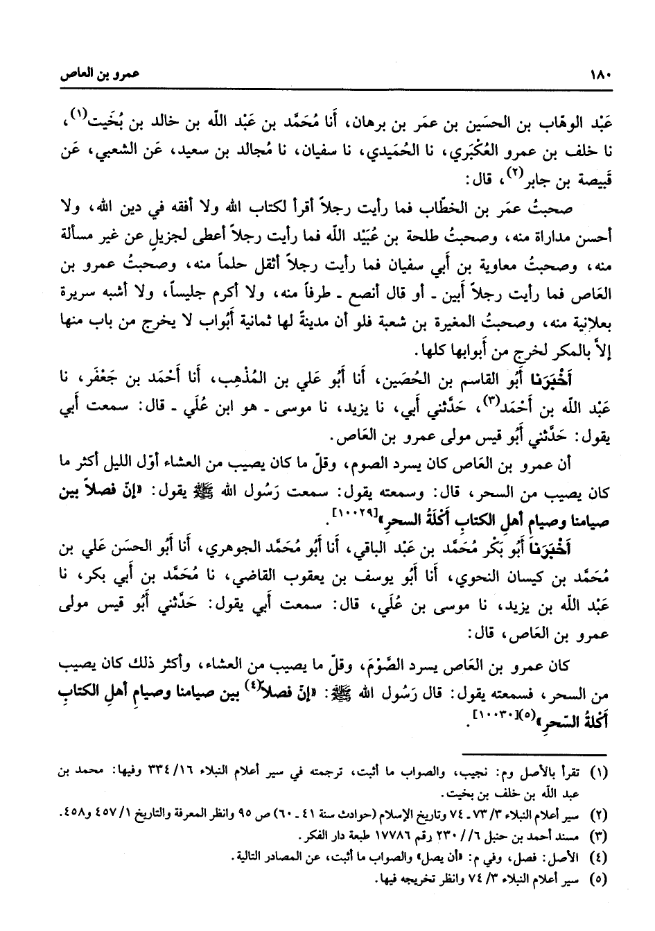 (5) سير أعلام النبلاء 3 / 74 وانظر تخريجه فيها
