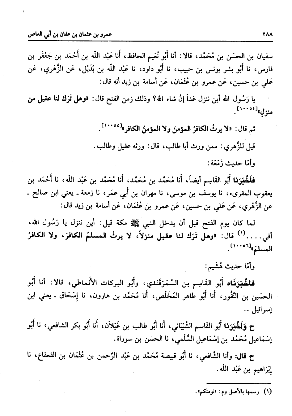 (1) قال وهل ترك لنا عقيل منزلا لا يرث المسلم الكافر ولا الكافر المسلم