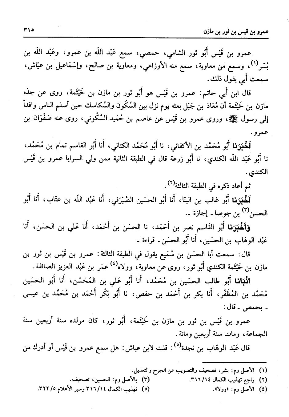 (5) تهذيب الكمال 14 / 316 وسير الأعلام 5 / 322