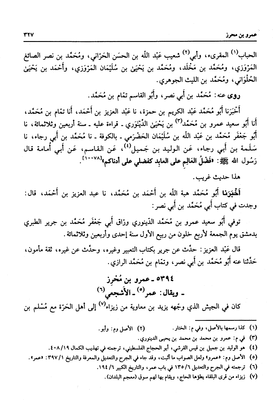 (6) ترجمته في الجرح والتعديل 6 / 135 في باب عمر والتاريخ الكبير 6 / 194