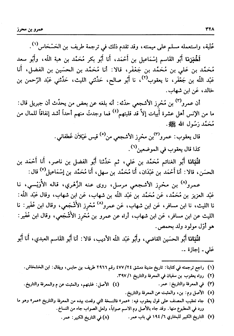 (1) راجع ترجمته في كتابنا: تاريخ مدينة دمشق 24 / 477 رقم 2966 طريف بن حابس ويقال: ابن الخشخاش