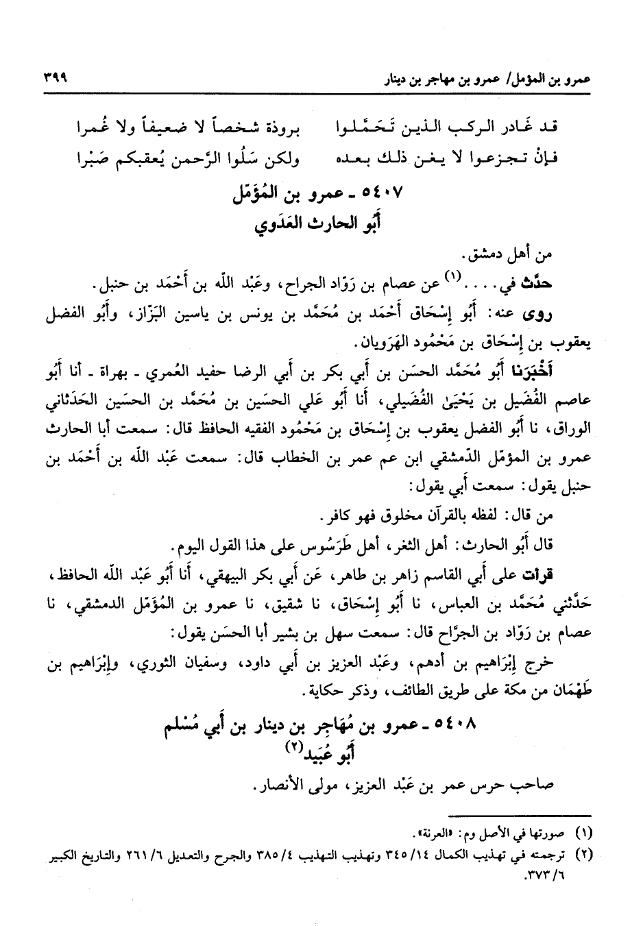 5407 - عمرو بن المؤمل أبو الحارث العدوي من أهل دمشق حدث في