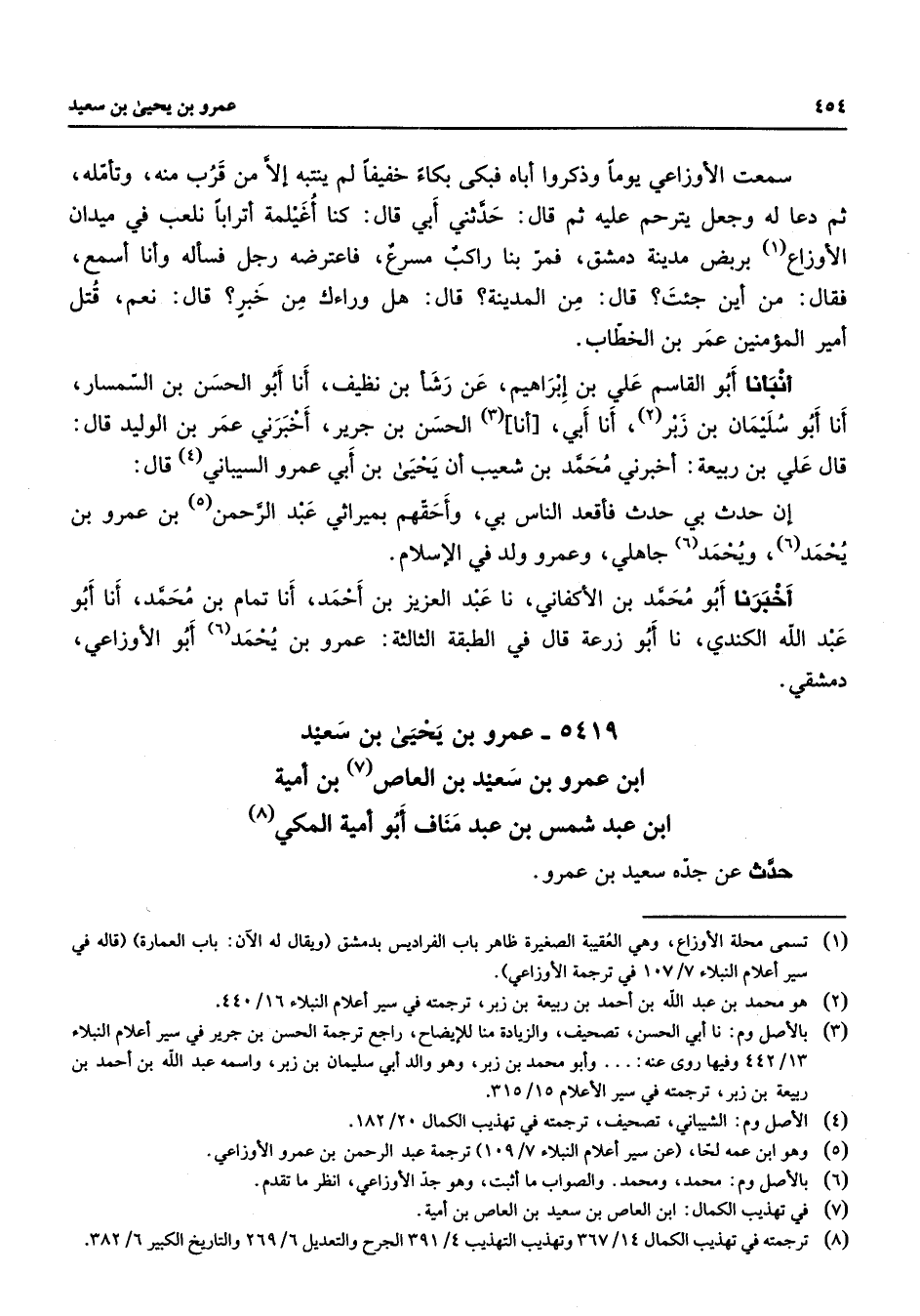 (5) وهو ابن عمه لحا (عن سير أعلام النبلاء 7 / 109) ترجمة عبد الرحمن بن عمرو الأوزاعي