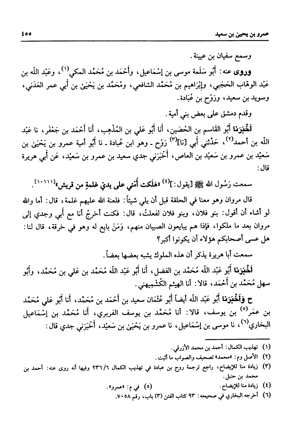 (6) أخرجه البخاري في صحيحه: 93 كتاب الفتن (3) باب رقم 7058