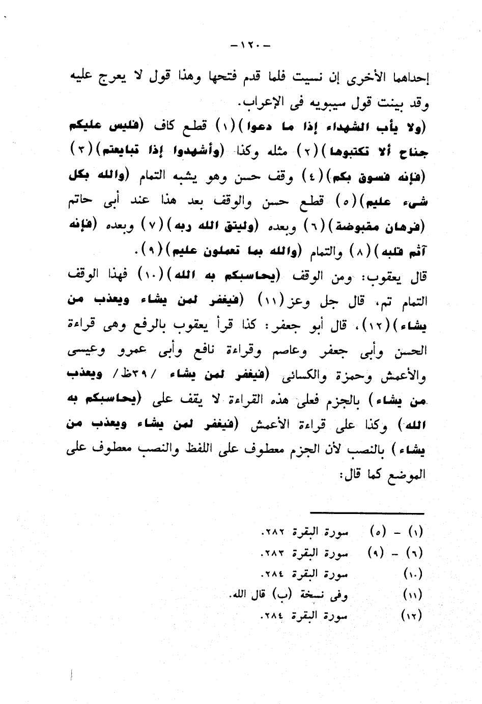 قال يعقوب: ومن {يحاسبكم به الله} فهذا الوقف التمام تم، قال جل وعز {فيغفر لمن يشاء ويعذب من يشاء}، قال أبو جعفر: كذا قرأ يعقوب بالرفع وهي قراءة الحسن وأبي جعفر وعاصم وقراءة نافع وأبي عمرو وعيسى والأعمش وحمزة والكسائي {فيغفر لمن يشاء ويعذب من يشاء} بالجزم فعلى هذه القراءة لا يقف على {يحاسبكم به الله} وكذا على قراءة الأعمش {فيغفر لمن يشاء ويعذب من يشاء} بالنصب لأن الجزم معطوف على اللفظ والنصب معطوف على الموضع كما قال: