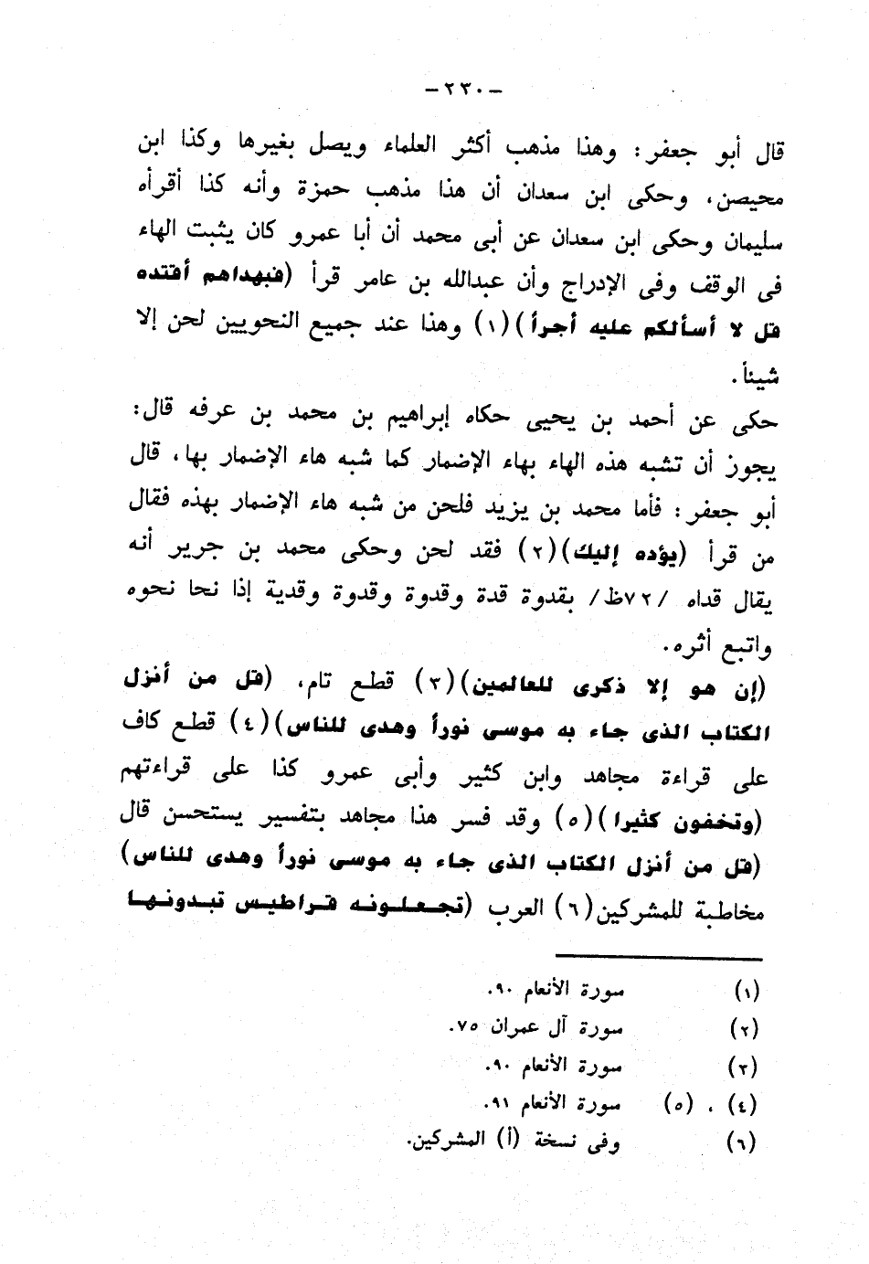 {إن هو إلا ذكرى للعالمين} قطع تام، {قل من أنزل الكتاب الذي جاء به موسى نورا وهدى للناس} قطع كاف على قراءة مجاهد وابن كثير وأبي عمرو كذا على قراءتهم {وتخفون كثيرا} وقد فسر هذا مجاهد بتفسير يستحسن قال (قل من أنزل الكتاب الذي جاء به موسى نورا وهدى للناس) مخاطبة للمشركين العرب {تجعلونه قراطيس تبدونها