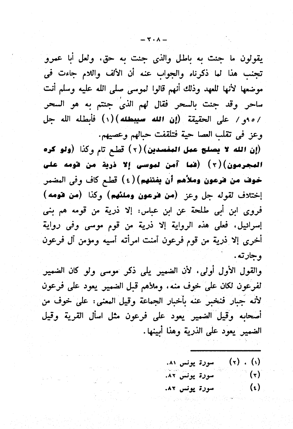 والقول الأول أولى، لأن الضمير يري ذكر موسى ولو كان الضمير لفرعون لكان على خوف منه، وملأهم قبل الضمير يعود على فرعون لأنه جبار فنخبر عنه بأخبار الجماعة وقيل المعنى: على خوف من أصحابه وقيل الضمير يعود على فرعون مثل اسأل القرية وقيل الضمير يعود على الذرية وهذا أبينها.