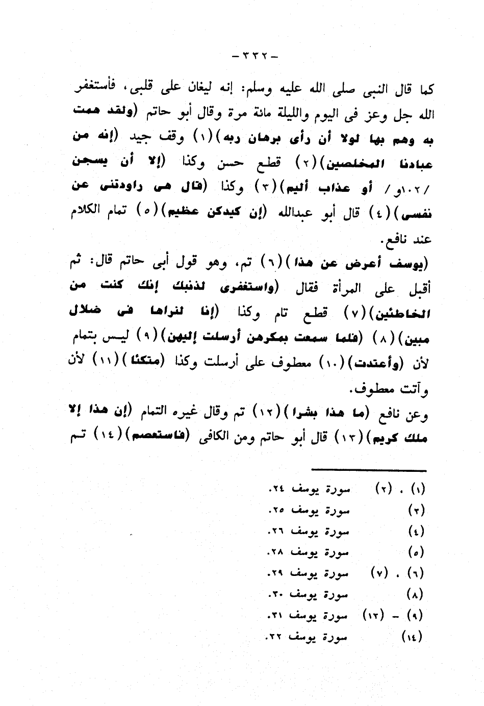 كما قال النبي صلى الله عليه وسلم: إنه ليغان على قلبي، فأستغفر الله جل وعز في اليوم والليلة مائة مرة وقال أبو حاتم {ولقد همت به وهم بها لولا أن رأى برهان ربه} وقف جيد {إنه من عبادنا المخلصين} قطع حسن وكذا {إلا أن يسجن أو عذاب أليم} وكذا {قال هي راودتني عن نفس} قال أبو عبد الله {إن كيدكن عظيم} تمام الكلام عند نافع.
