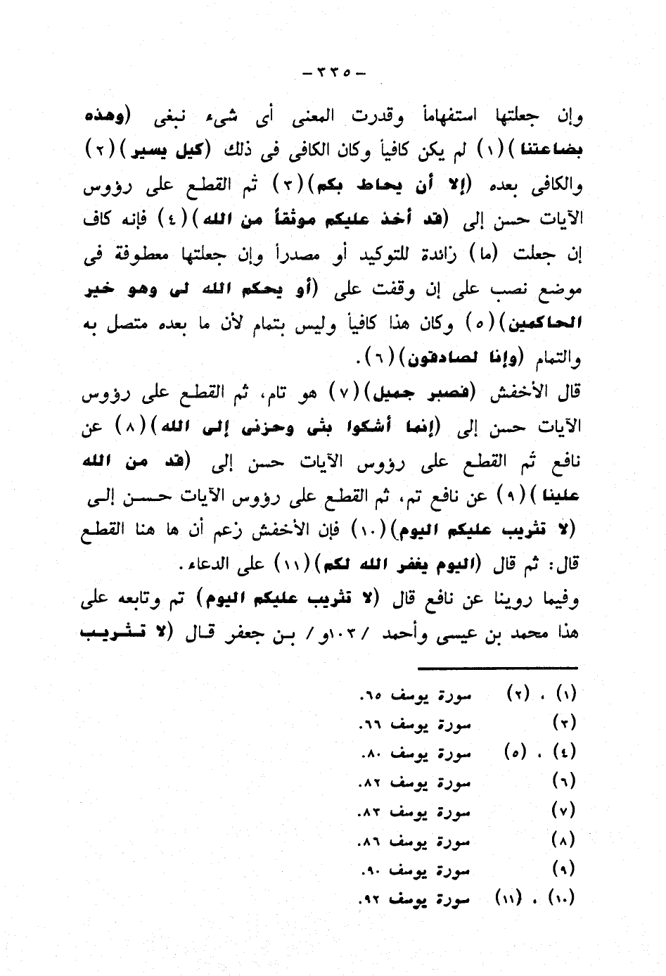وفيما روينا عن نافع قال (لا تثريب عليكم اليوم) تم وتابعه على هذا محمد بن عيسى وأحمد بن جعفر قال {لا تثريب