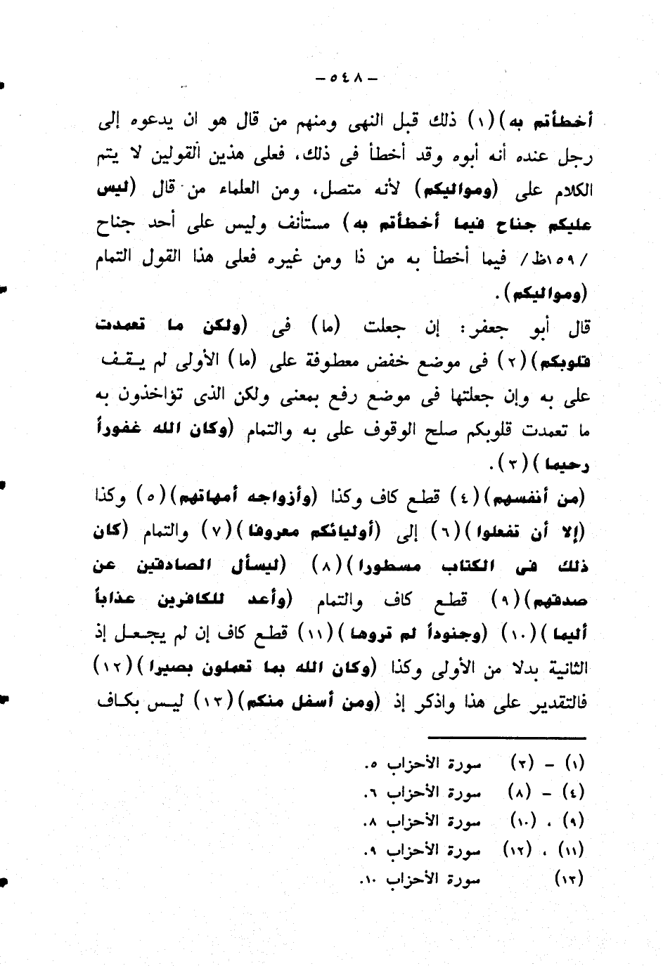 قال أبو جعفر: إن جعلت {ما} في {ولكن ما تعمدت قلوبكم} في موضع خفض معطوفة على {ما} الأولى لم يقف على به وإن جعلتها في موضع رفع بمعنى ولكن الذي تؤاخذون به ما تعمدت قلوبكم صلح الوقوف على به والتمام {وكان الله غفورا رحيما}.