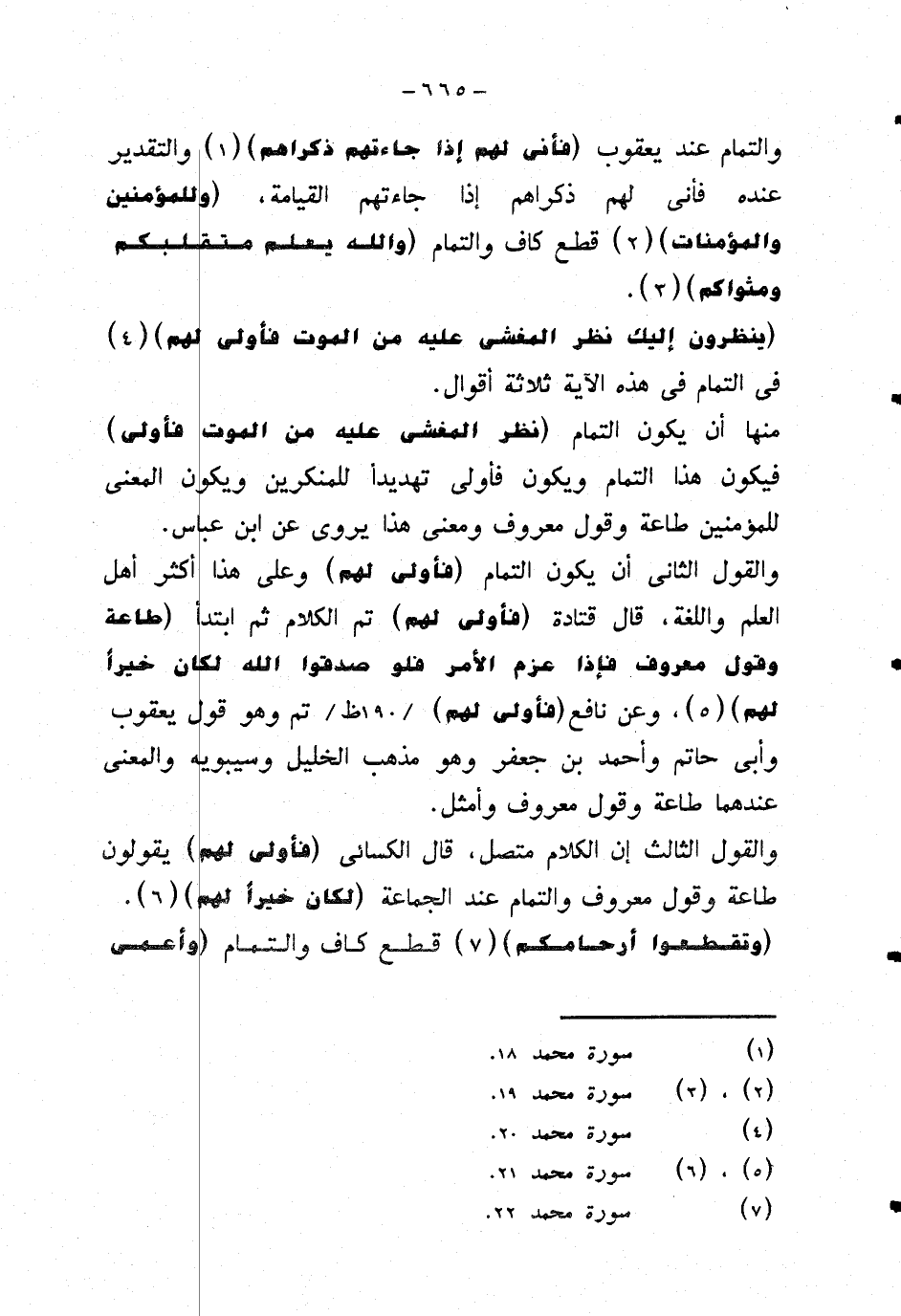 {ينظرون إليك نظر المغشي عليه من الموت فأولى لهم} في التمام في هذه الآية ثلاثة أقوال.