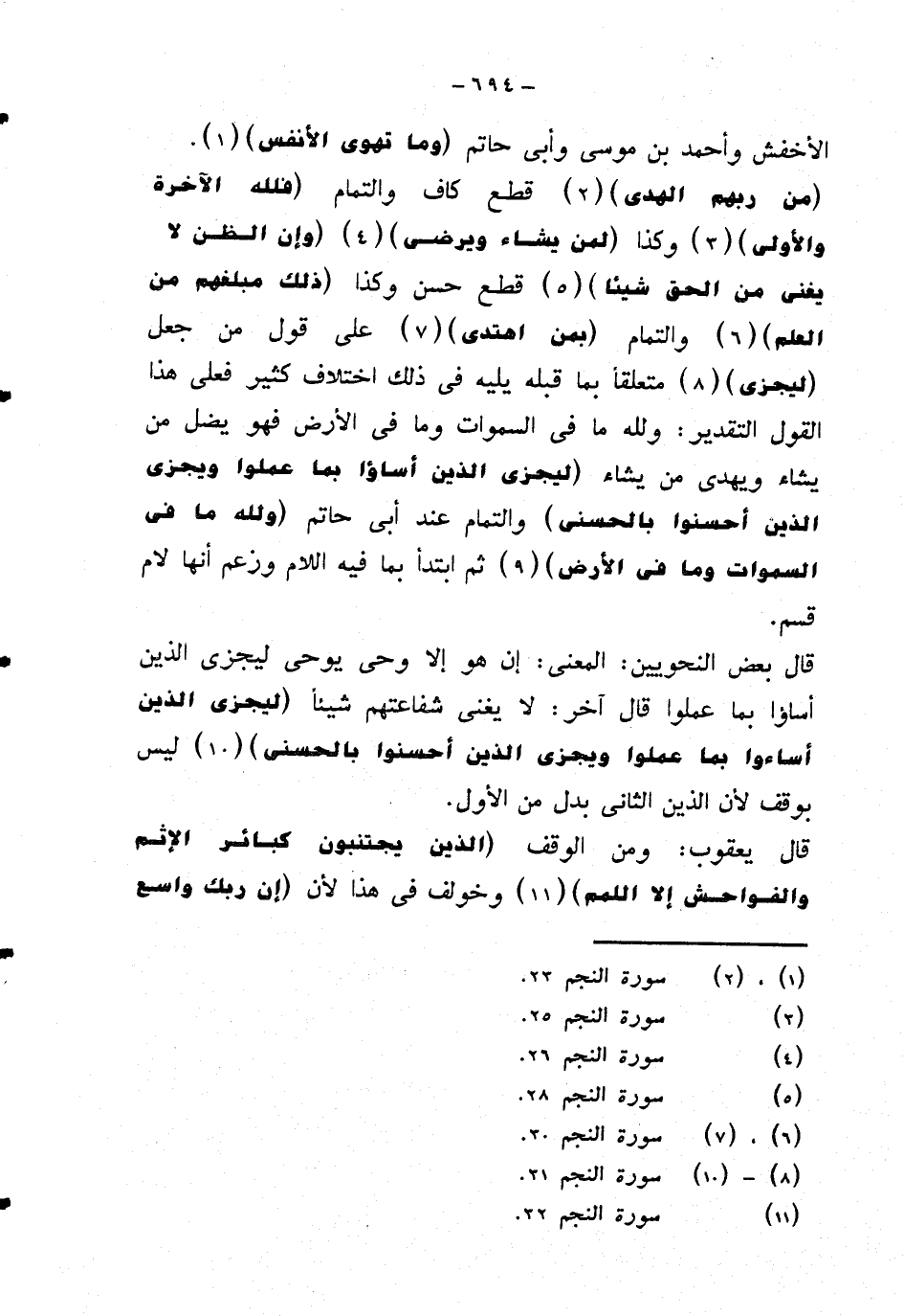 قال بعض النحويين: المعنى: إن هو إلا وحي يوحي ليجزي الذين أساؤا بما عملوا قال آخر: لا يغني شفاعتهم شيئا {ليجزي الذين أساءوا بما علموا ويجزي الذين أحسنوا بالحسنى} ليس بوقف لأن الذين الثاني بدل من الأول.