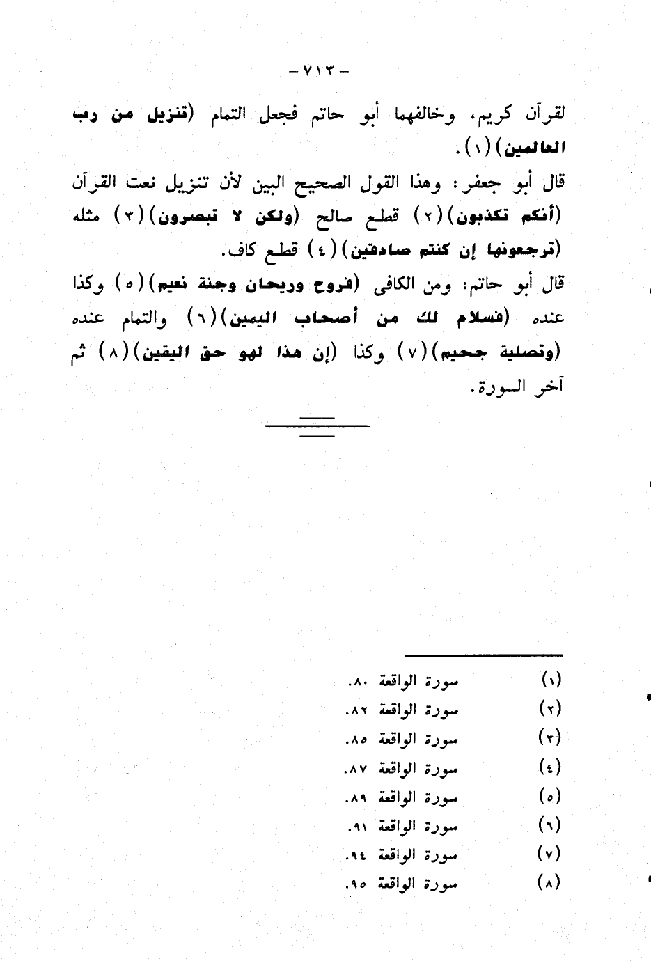قال أبو حاتم: ومن الكافي {فروح وريحان وجنة نعيم} وكذا عنده {فسلام لك من أصحاب اليمين} والتمام عنده {وتصلية جحيم} وكذا {إن هذا لهو حق اليقين} ثم آخر السورة ..