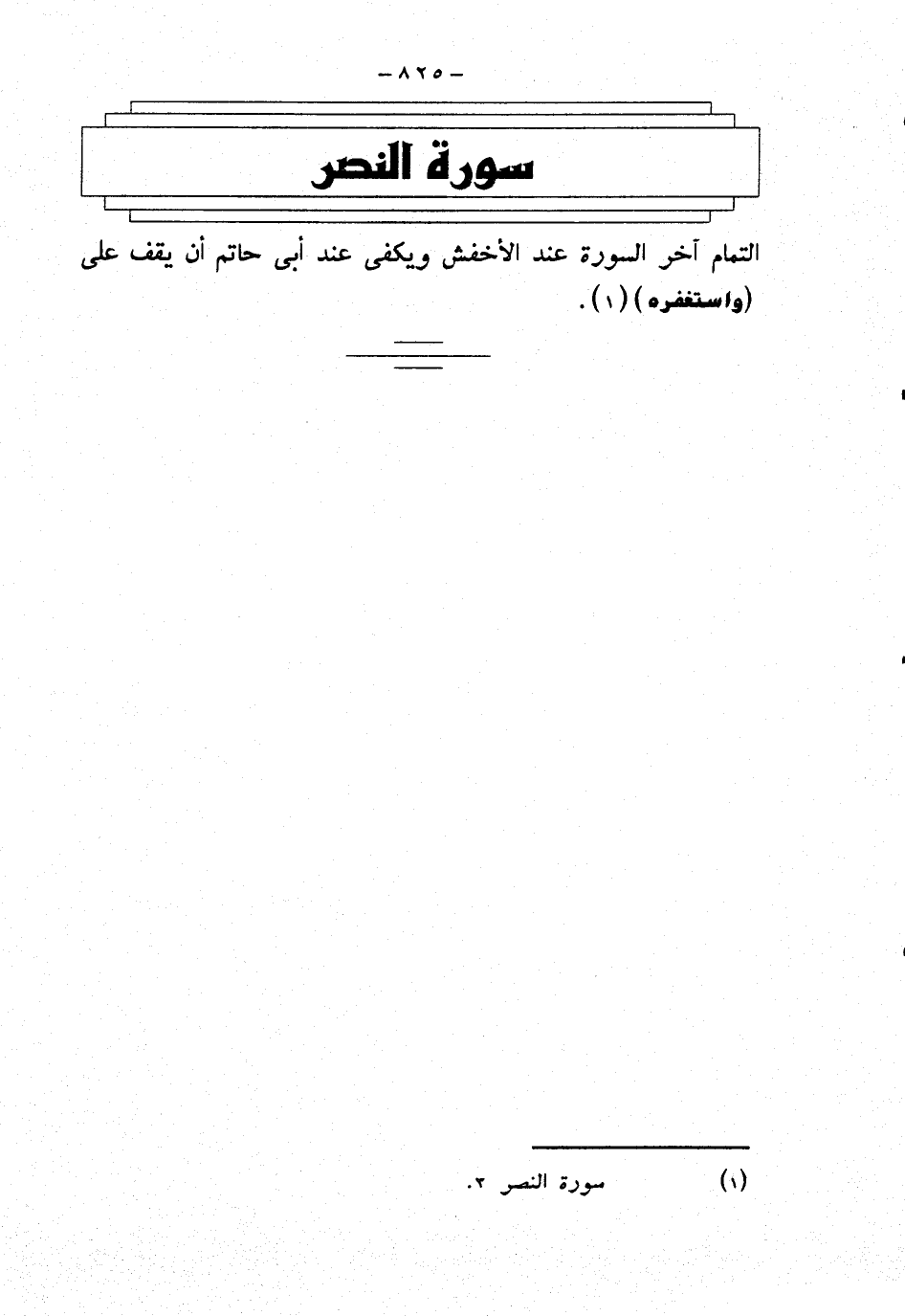 التمام آخر السورة عند الأخفش ويكفي عند أبي حاتم أن يقف على {واستغفره}.