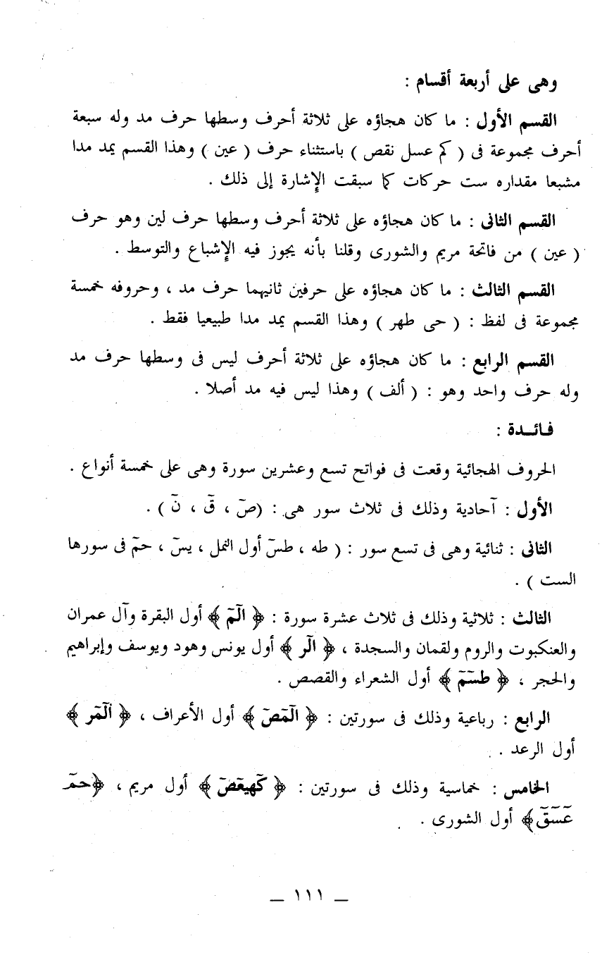 الرابع: رباعية وذلك في سورتين: {المص} أول الأعراف، {المر} أول الرعد.