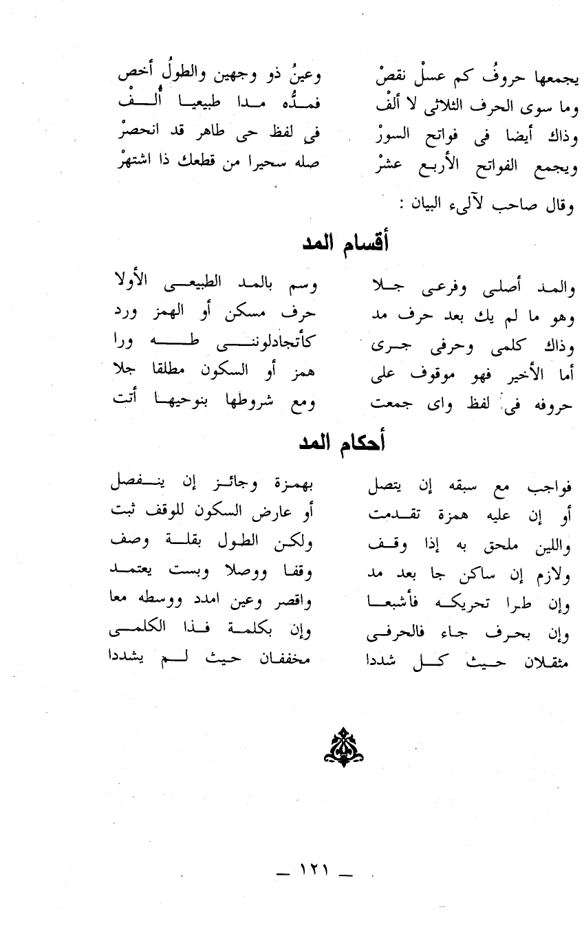 وما سوى الحرف الثلاثي لا ألف ... فمدُّه مدًّا طبيعيًّا أُلِفْ