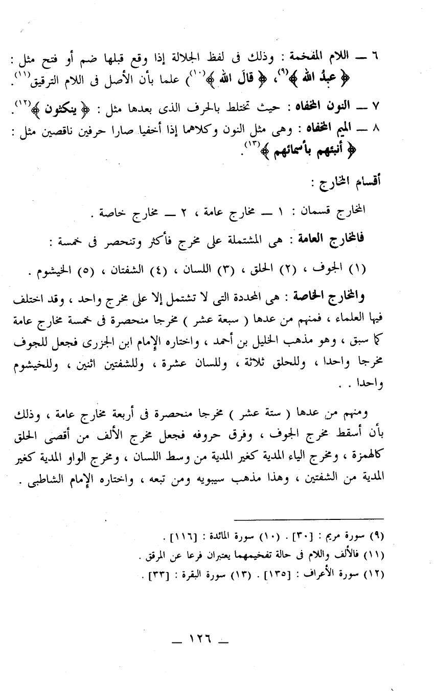 8- الميم المخفاة: وهي مثل النون وكلاهما إذا أُخْفِيَا صارا حرفين ناقصين مثل: {أَنْبِئْهُمْ بِأَسْمَائِهِمْ} 5.