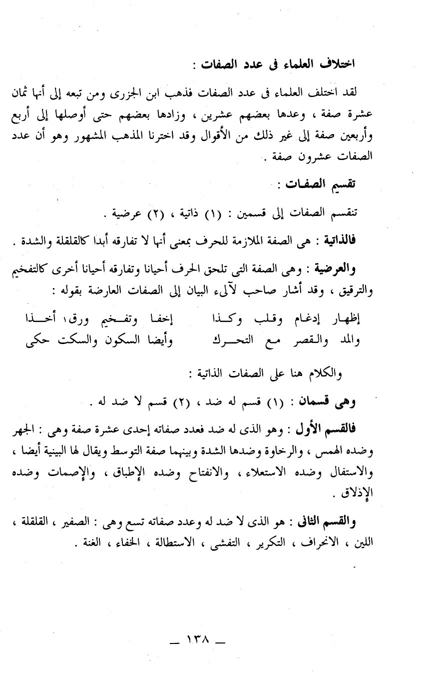 لقد اختلف العلماء في عدد الصفات: فذهب ابن الجزري ومن تبعه إلى أنها ثماني عشرة صفة، وعدَّها بعضهم عشرين، وزادها بعضهم حتى أوصلها إلى أربع وأربعين صفة إلى غير ذلك من الأقوال، وقد اخترنا المذهب المشهور وهو أن عدد الصفات عشرون صفة.