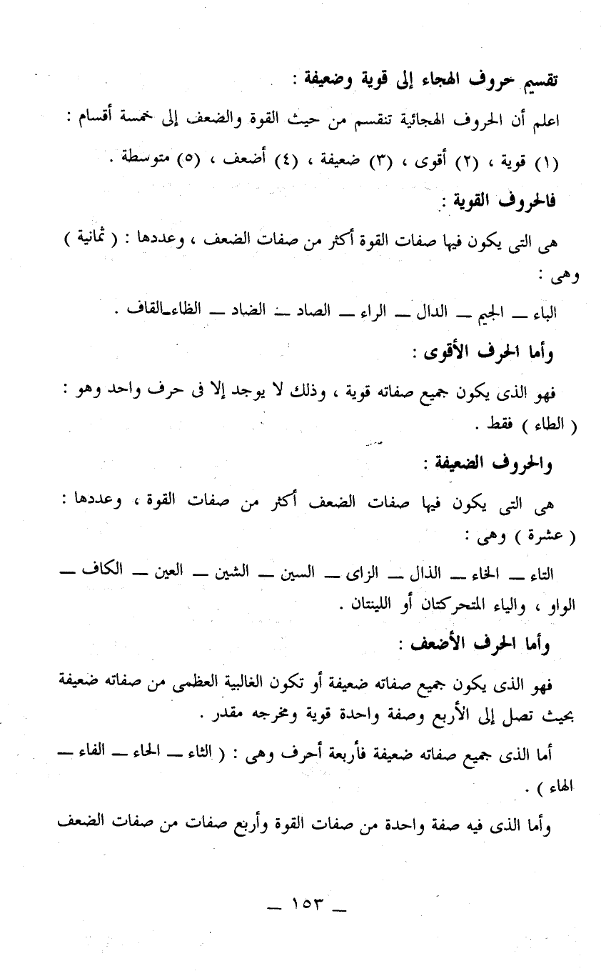 اعلم أن الحروف الهجائية تنقسم من حيث القوة والضعف إلى خمسة أقسام: