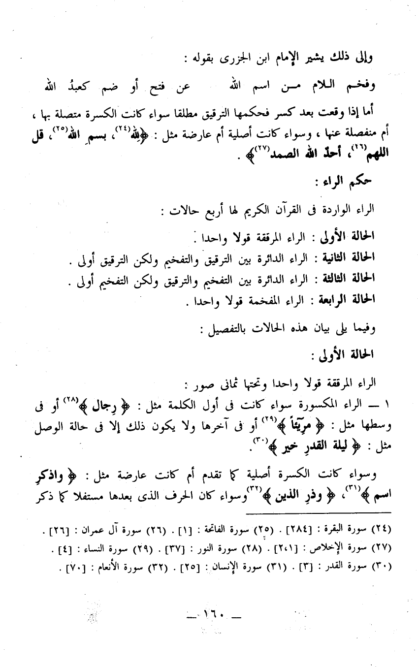 الراء الواردة في القرآن الكريم لها أربع حالات: