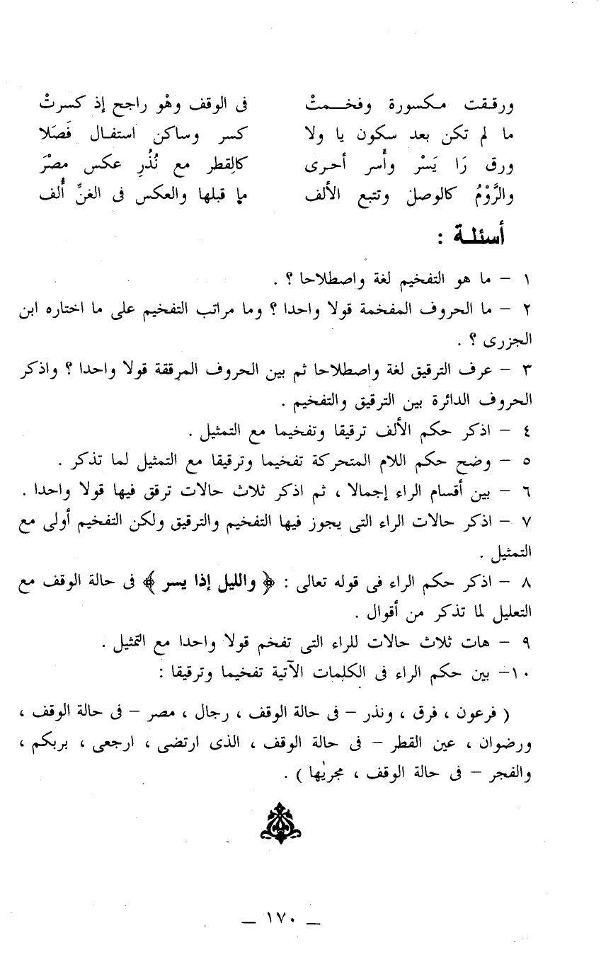 6- بين أقسام الراء إجمالا، ثم اذكر ثلاث حالات ترقق فيها قولا واحدًا.