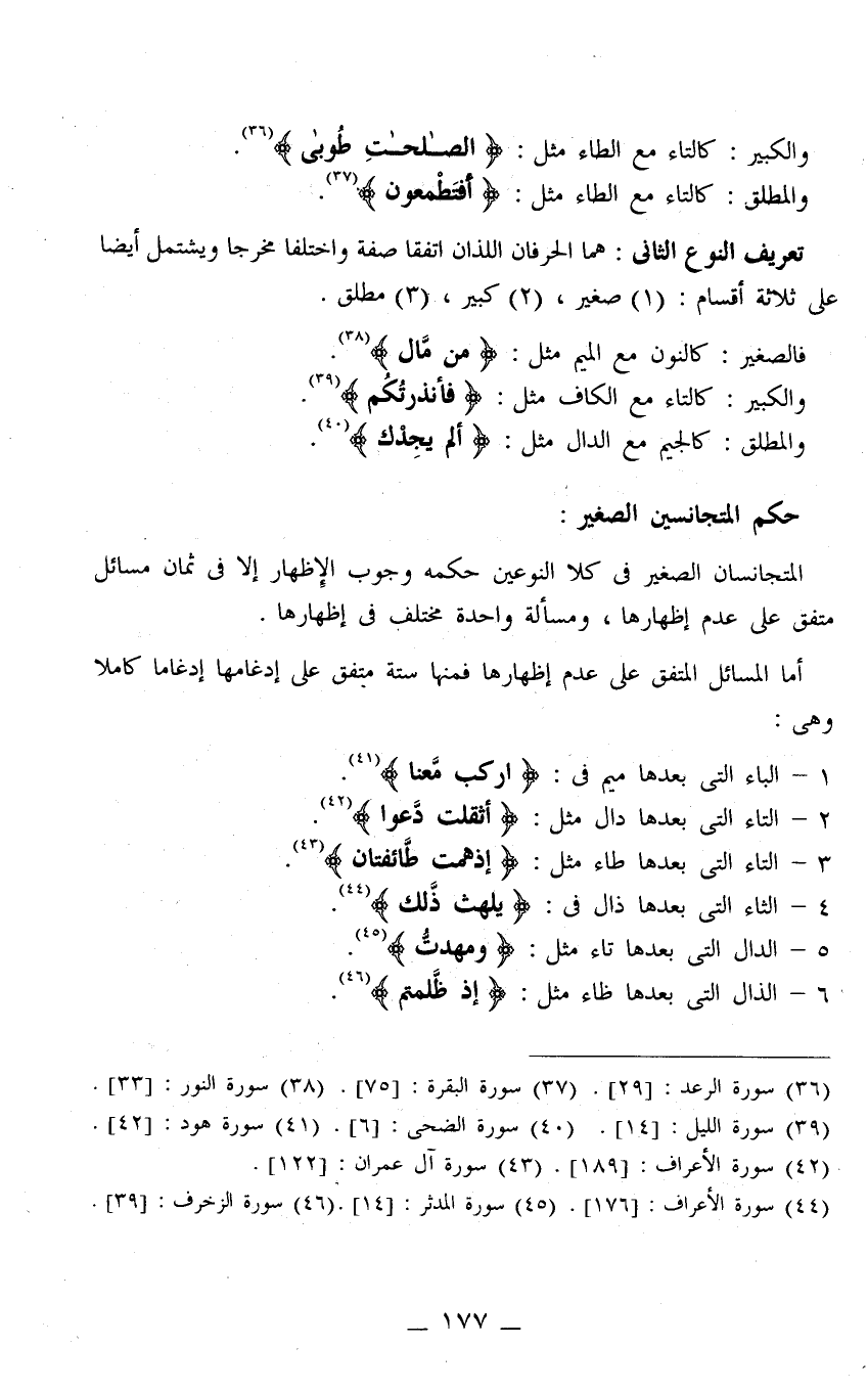 المتجانسان الصغير حكمه وجوب الإظهار مطلقًا إلا في ثمان مسائل منها ستٌّ متفق على إدغامها إدغامًا كاملا وهي:
