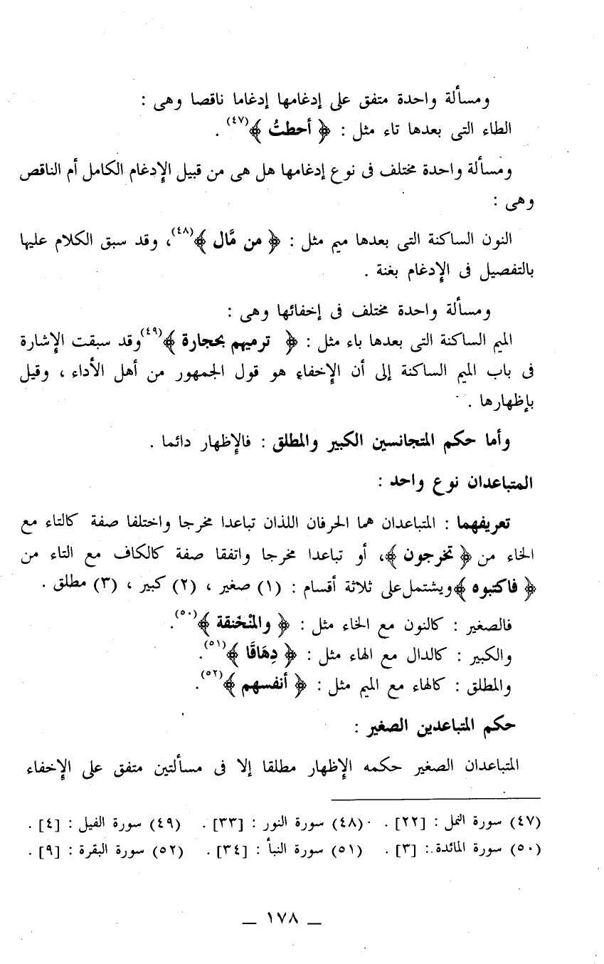 المتباعدان الصغير حكمه الإظهار مطلقًا إلا في مسألتين متفق على الإخفاء فيهما4 وهما: