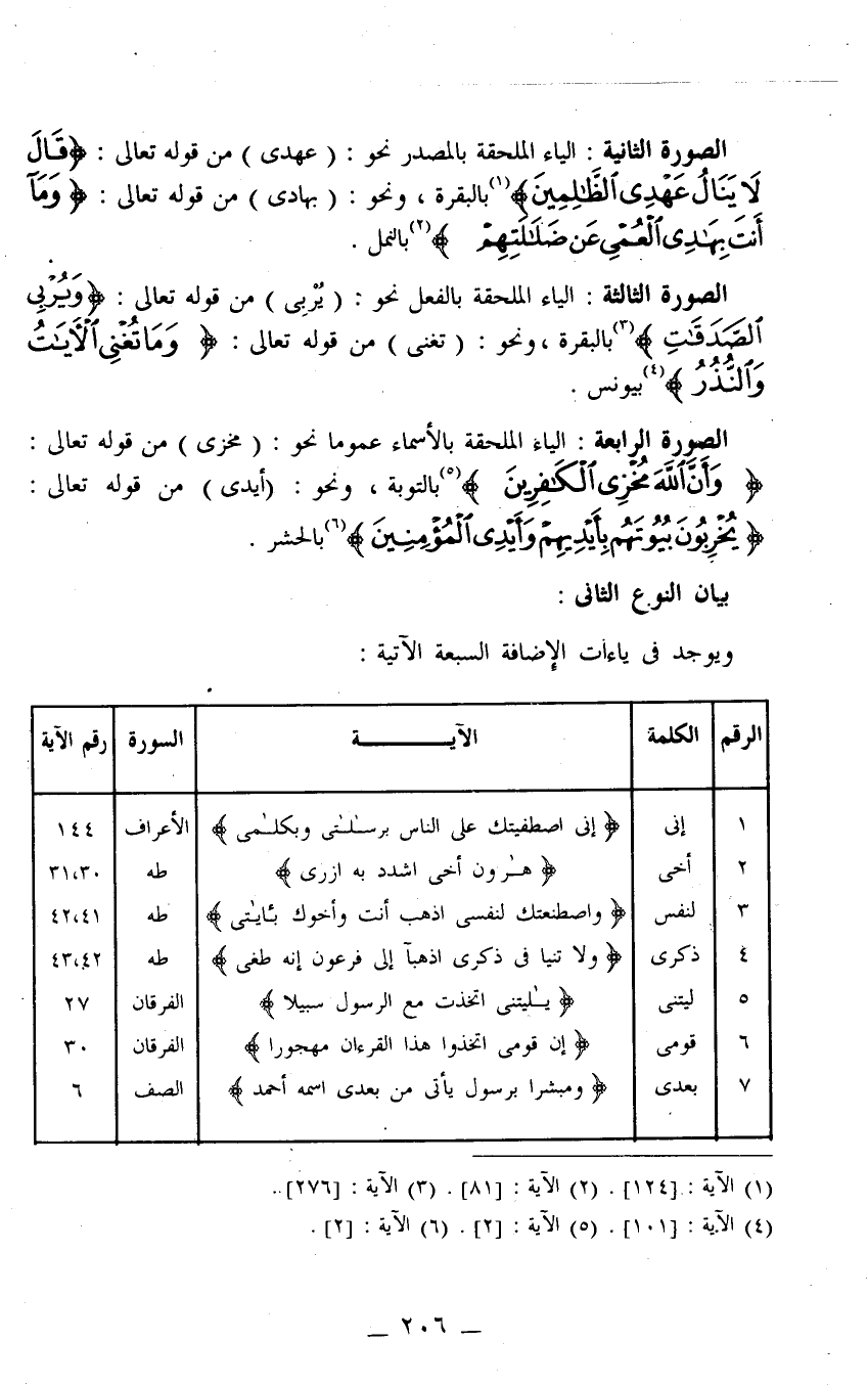 ويوجد في ياءات الإضافة السبعة الآتية: