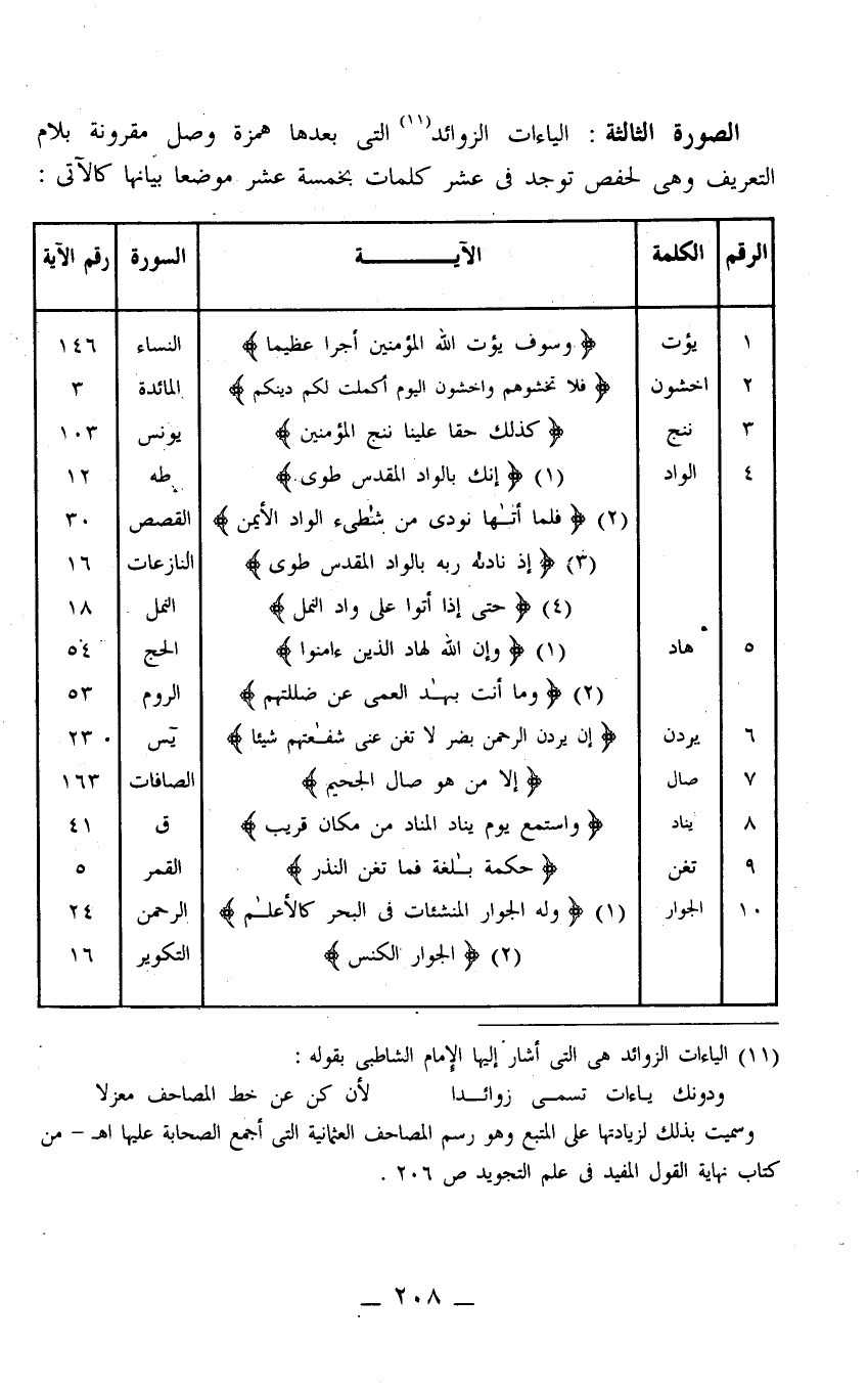 الصورة الثالثة: الياءات الزوائد1 التي بعدها همزة وصل مقرونة بلام التعريف وهي لحفص، توجد في عشر كلمات بخمسة عشر موضعًا بيانها كالآتي: