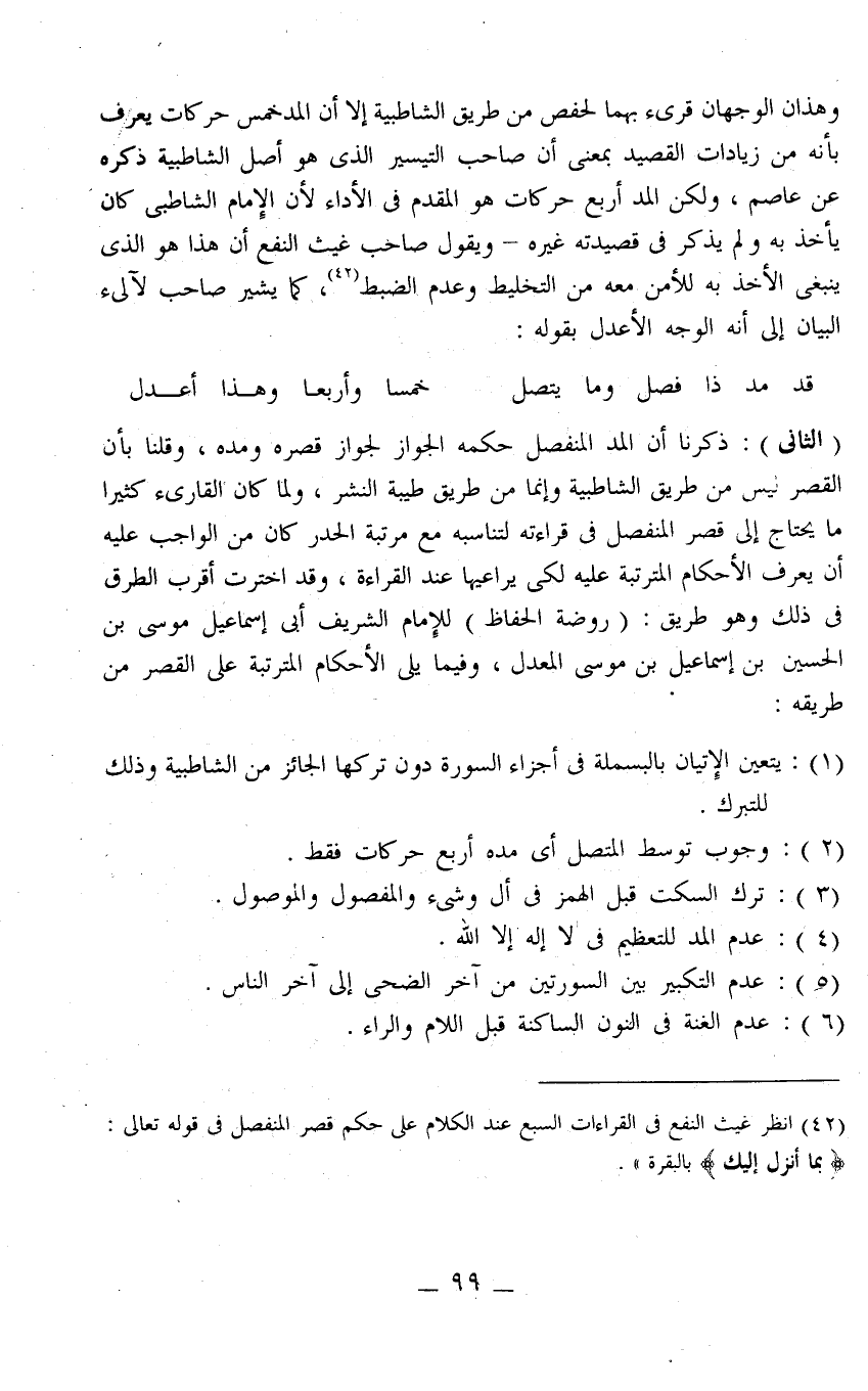1 انظر: "غيث النفع في القراءات السبع" عند الكلام على حكم قصر المنفصل في قوله تعالى: {بِمَا أُنْزِلَ إِلَيْكَ} بالبقرة.
